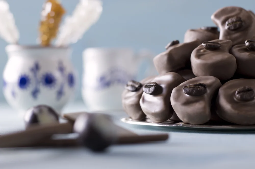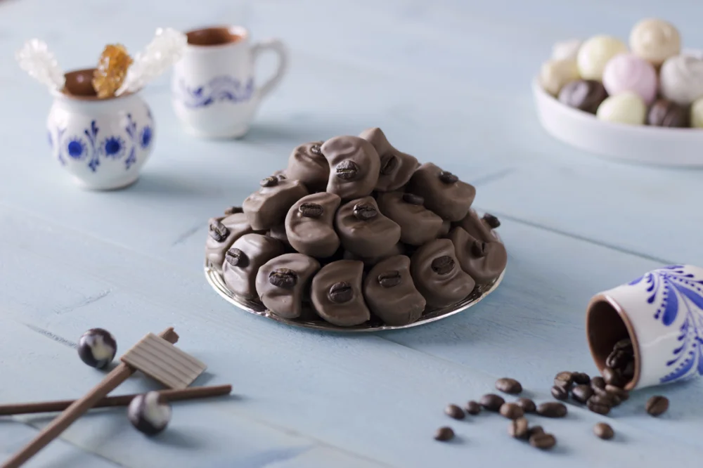 Ingrediente: fondant alb 60% (zahar, sirop de glucoza, apa, corector de aciditate: acid citric), LAPTE praf 26% grasime, amidon din porumb, cafea* macinata 2%, decorate cu: ciocolata cu LAPTE 29% (zahar, LAPTE praf integral, unt de cacao, lichior de cacao (masa), lecitina de SOIA emulsionata, extract natural de vanilie) si cafea* boabe 0.4%.