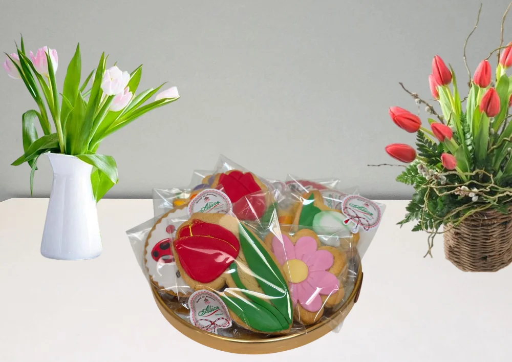 INGREDIENTE: aluat fraged cu UNT (82%) 75%[faina alba de GRAU 550, UNT (82%) 18%(SMANTANA din lapte de vaca pasteurizat), pudra de MIGDALE 18%(100% MIGDALE), zahar, sare iodata], decor: pasta de zahar 24%[(zahar, sirop de glucoza, grasime vegetala: miez de palmier, nuca de cocos, amidon de porumb, agent de umidificare: glicerol, apa, agent de ingrosare: guma de xantan, aroma naturala de vanilie, coloranti (in functie de model): Albastru – albastru brilian/ albastru patent V/ negru PN, Bej – beta-caroten, sulfit amoniu-caramel, Fuchsia – carmoizina(*), Galben - tartrazina(*), Maro - caramel de sulfit de amoniud-carbune vegetal-brun HT, Mov - carmin-albastru briliant, Negru - galben apus de soare FCF(*) - albastru briliant-rosu allura AC(*), Rosu - rosu allura AC (*)-galben apus de soare FCF (*)-eritrozina(*), Roz – carminul de cosenila, Verde - tartrazina(*) - albastru brilliant - albatru patent V], amidon, gel neutru transparent 1%(sirop de glucoza, apa, zahar, agent ingrosare: pectina, caragenan, regulator aciditate: acid citric, citrat trisodic, conservant: sorbat de potasiu, indulcitor: aspartam, acesulfam potasiu).
